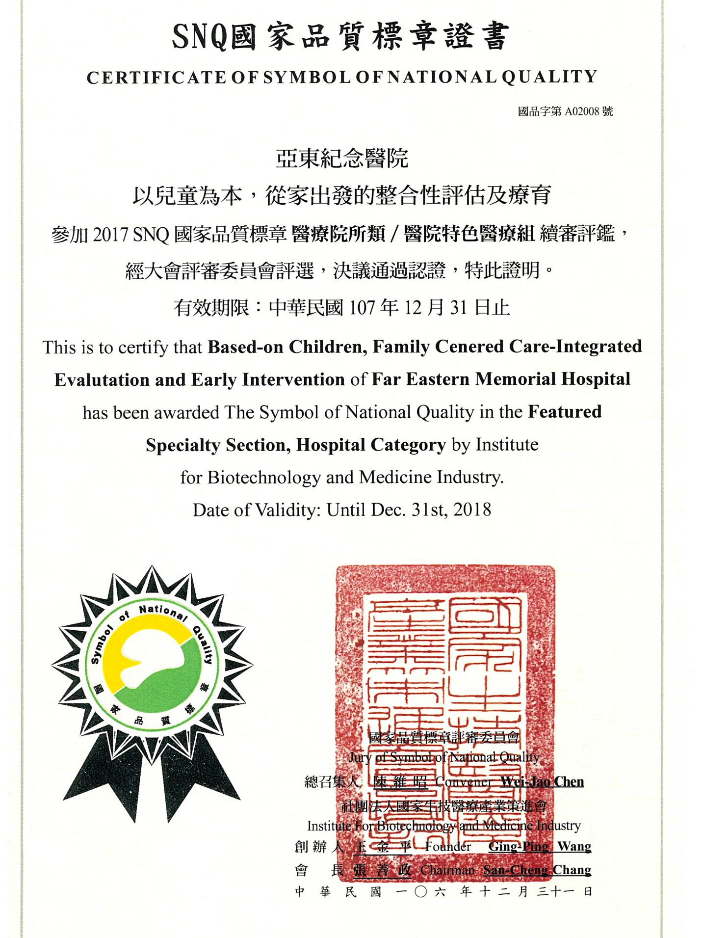 2017-2018年「以兒童為本,從家出發的整合性評估及療育」SNQ認證