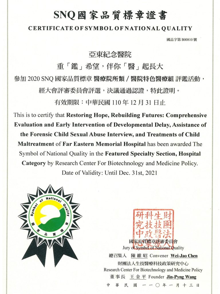 2020年「重鑑希望,伴你長大」SNQ國家品質標章認證