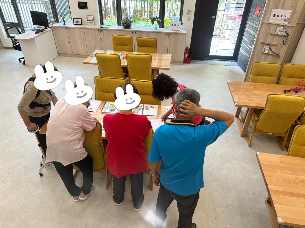 小編今天捕捉到一個超可愛的畫面~照服老師帶著長輩們互相欣賞彼此的畫作。
