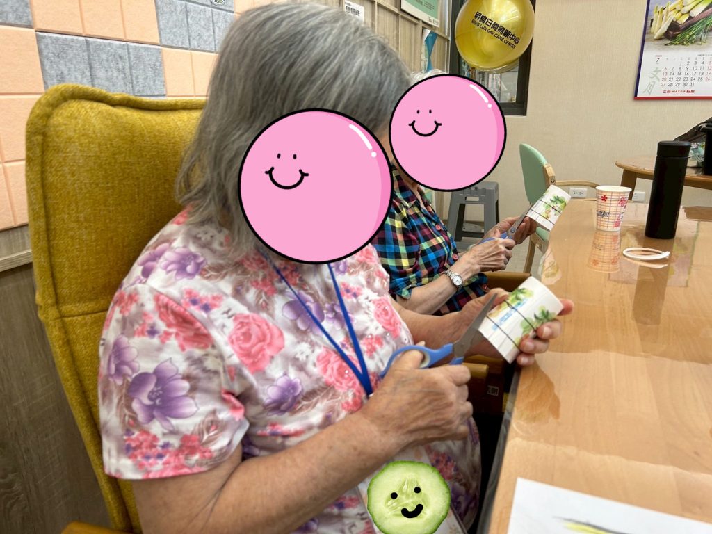 汝汝老師發現奶奶喜歡用手做一些簡單的小手工。這次她們一起做了小雨傘裝飾,奶奶仔細地剪著紙,手勢緩慢但很穩定。完成後,接著美美老師輕聲地哼起「咱二人做陣遮著一支小雨傘~」,奶奶雖然沒有加入,但眼裡滿是溫柔的笑意。☂️🎶