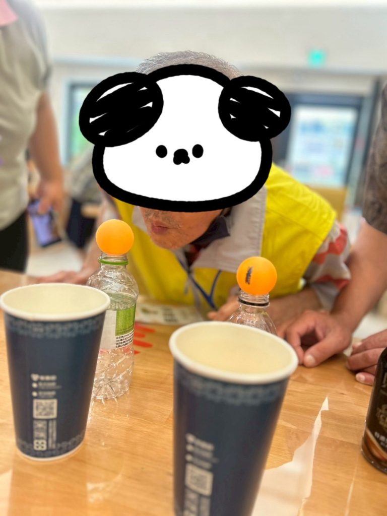 最後我們來一場「速度PK賽」,有的長輩快狠準連連得分,有的穩中求勝不慌不亂,現場笑聲、加油聲此起彼落,原來簡單的活動也可以這麼緊張刺激又好玩💖