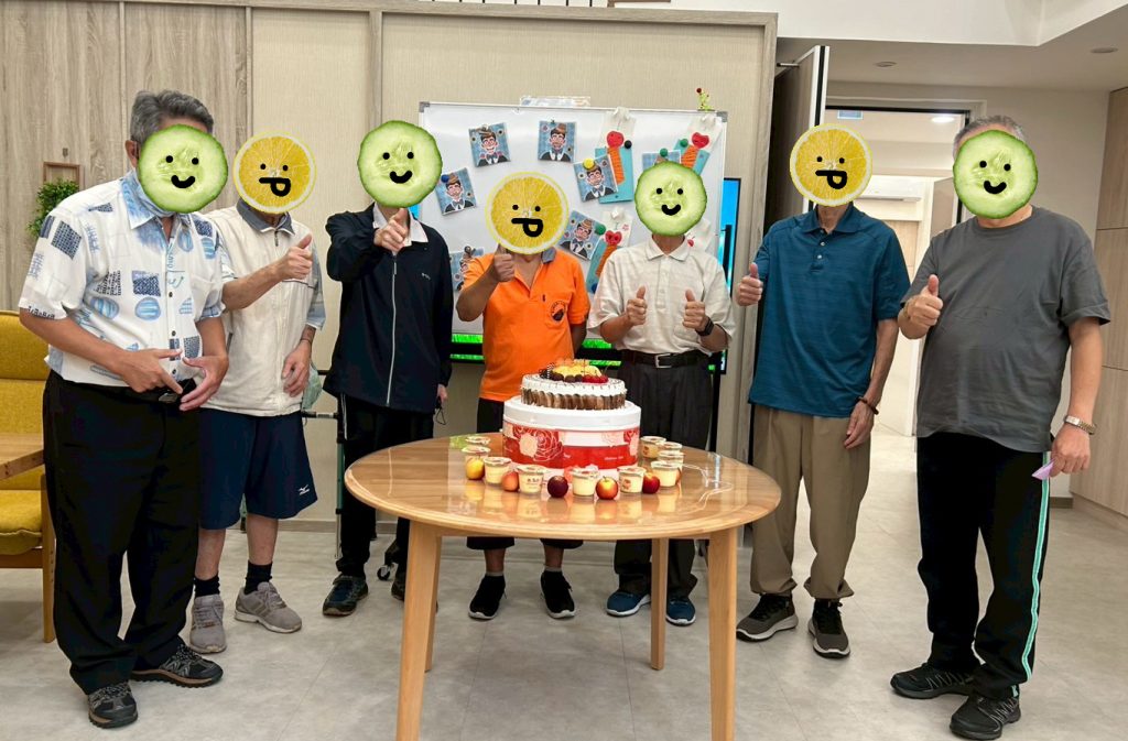 長輩們圍在一起唱歌、拍照、吃蛋糕,笑容滿滿~
